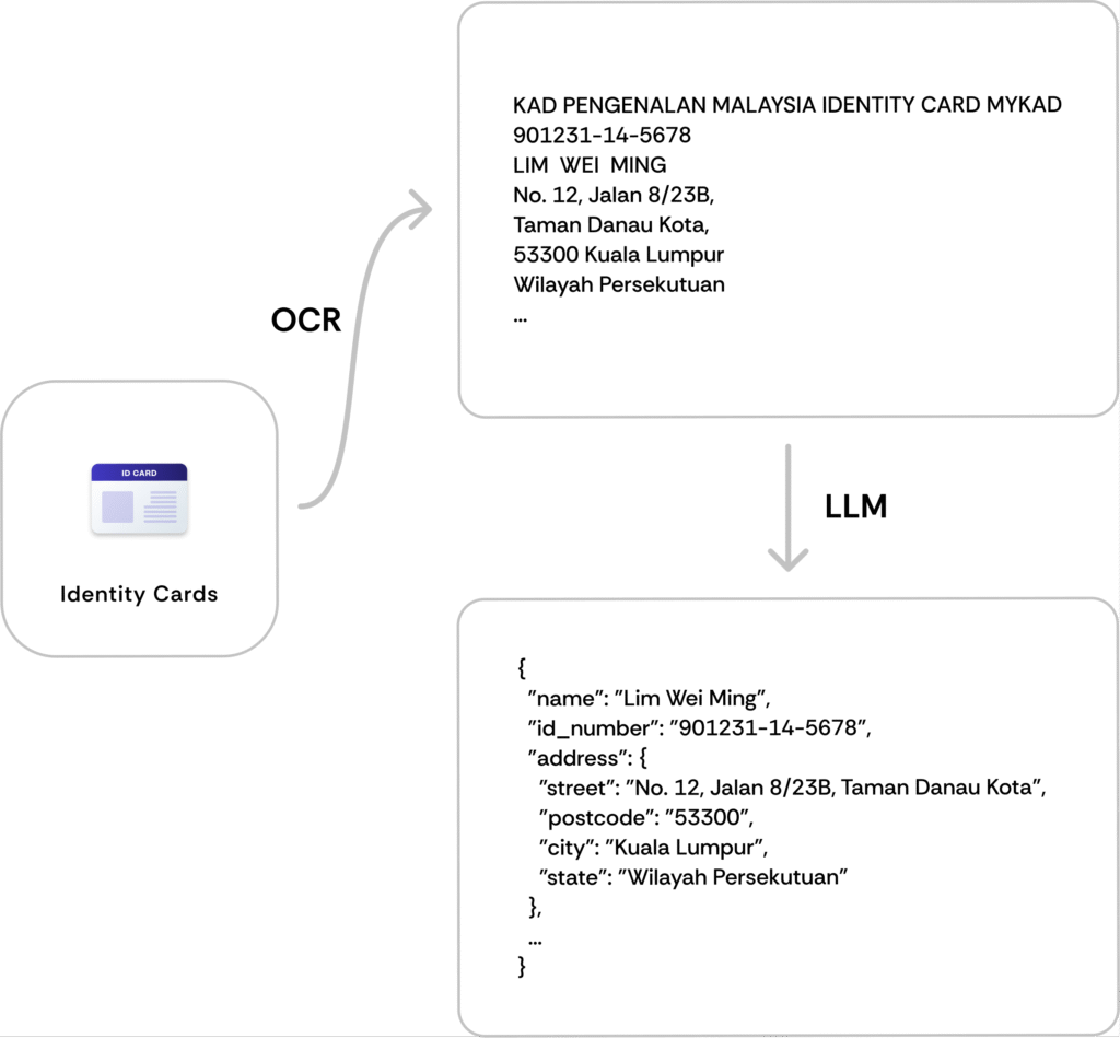 Then, our LLM interprets the extracted text to identify and categorise the relevant data points.