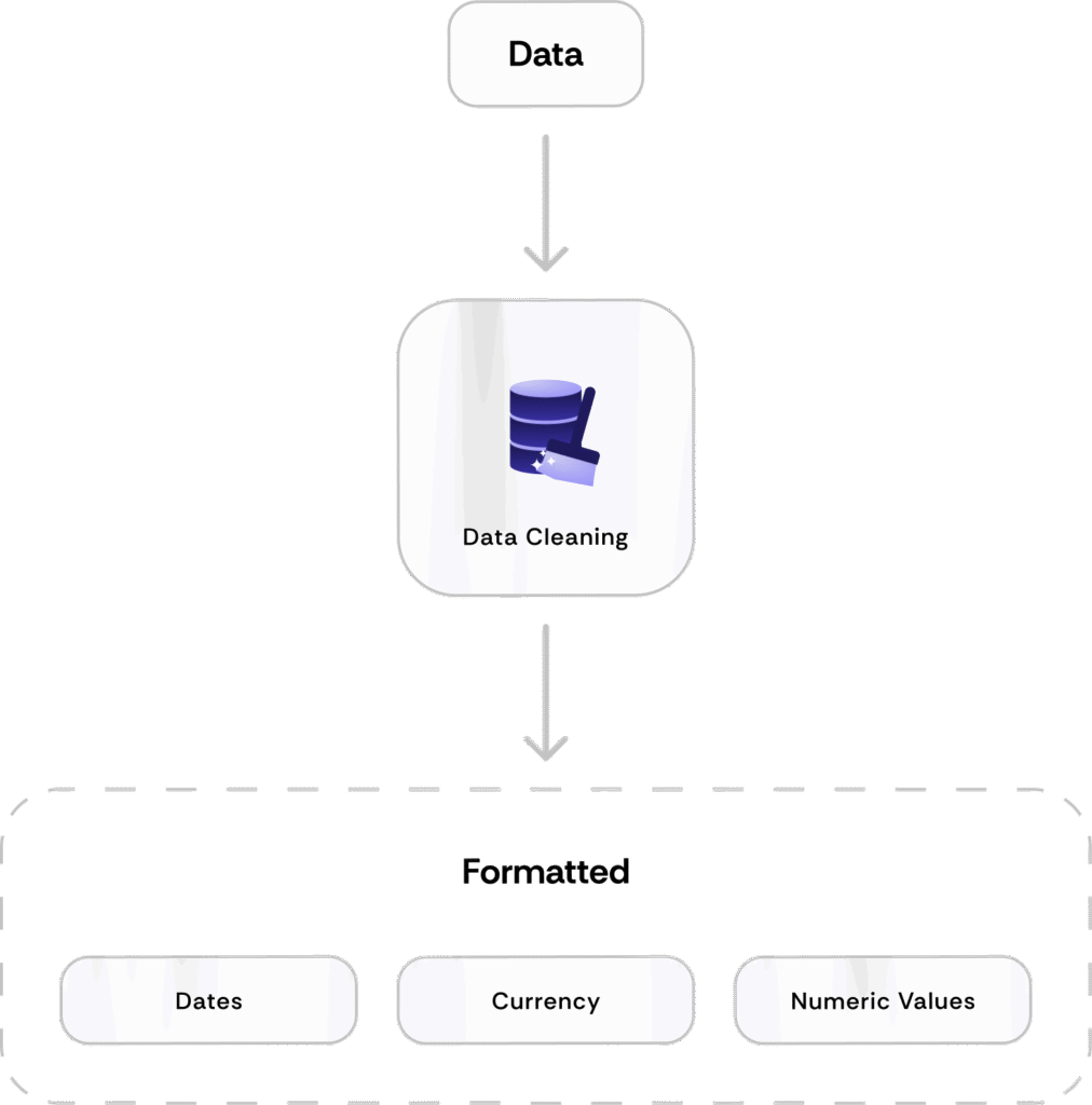 The platform will perform data normalization to ensure consistent formats for dates, currency, and numeric values across all sources.